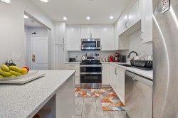 Welcome to this beautifully maintained 2-bedroom, 2-bathroom apartment offering over 1,000 sq ft of comfortable living space in the heart of South Surrey. Perfectly situated close to public transit, shopping, dining, and with easy access to Highway 99, this home combines convenience with lifestyle. Step inside to a bright and functional layout featuring a large living and dining area, ideal for both everyday living and entertaining. Enjoy your morning coffee or host guests on the generous balcony. The kitchen is well-appointed with ample cabinetry, and the convenience of in-suite laundry adds to the home's appeal. The spacious primary bedroom includes a full ensuite, while the second bedroom and bathroom are perfect for guests, a home office, or family.