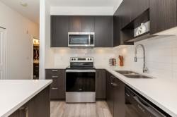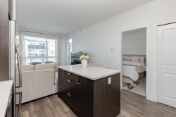 Welcome to Kings Landing by Dawson & Sawyer - This pristine 1 bed, 1 bath plus den unit boasts of contemporary open living space. Bright and open concept featuring 9' ceilings, dark shaker cabinetry with designer stainless steel hardware, quartz countertops, durable laminate flooring & stainless steel appliances. Unit includes 1 underground parking, amenities room & bike room. Prime location - conveniently located near Skytrain, SFU Surrey, future UBC campus, shopping, recreation, restaurants, and much more! Rentals and Pets allowed (1 cat or dog), Perfect for investment or first time buyers.