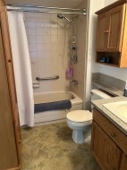 Top Floor Mountain View Bright Very spacious open plan one bed and den with new flooring, ensuite laundry, large main bed with semi ensuite full bathroom. Gated complex with common rec room, hot tub, outdoor pool and lots visitor parking. Central location close to shopping and transit.