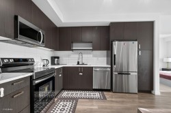 Welcome to Kings Landing II by Dawson + Sawyer! Built in 2021, this bright and modern 3-bedroom, 2-bath home features a well-designed open-concept layout with contemporary finishes throughout. The stylish kitchen offers stainless steel appliances, quartz countertops, a large island with extra storage, and durable laminate flooring—ideal for everyday living and entertaining. Enjoy a prime location with transit at your doorstep, just steps to Bear Creek Park, Costco, shopping, and restaurants. Located in the catchment for Bear Creek Elementary and Frank Hurt Secondary. Book your private showing today! *** Open house Sat and Sun [Dec 20 & 21] 2-4pm.***