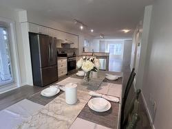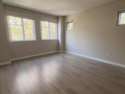 Rarely available end unit 3 bedroom, 2 bath room townhouse in Palette on the park with a big private fenced yard like a duplex. Main floor features an open concept layout with a large living room and cozy fireplace, dining area, and a bright kitchen equipped with stainless steel appliances and a breakfast bar. From the kitchen there is access to the backyard and a covered porch with stairs to the side yard, ideal for family with kids and pets. Upstairs with 3 good size bedrooms, including a master bedroom with a private en-suite and double sink and his-and-her closets. The oversized tandem double garage offers a storage room and work area. Brand new stainless steel kitchen appliances, brand new laminate flooring all throughout, new paint. Close to transit, schools and shopping. A must see!