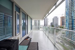 Embrace Panoramic South West views to the Fraser River & Urban Energy 24/7!Enjoy the stunning sunset from this beautifully designed residence at MC², an architectural landmark by James Cheng, built to LEED environmental standards.Stay comfortable year-round with Jaga heating/cooling systems and enjoy the kitchen including a Gourmet Blomberg appliance package with solid caesartone countertops, bathrooms featuring a soaker tub, porcelain tile flooring & marble polished countertops.3 mins walk to SkyTrain station, T&T grocery store, Winners, banks, Cineplex and restaurants.Top-rated elementary & high school catchments (Churchill). The master bedroom is rarely big in the condos.1 parking + 1 locker included.