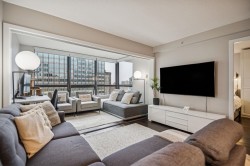 Stunning SUB PENTHOUSE at Electric Avenue! Rarely available, this FLEXIBLE FLOORPLAN can be used as a spacious 1 BDR/Den w/ flex, or converted to a cozy jr 2 br with den/office. Recently updated with new appliances, light fixtures, fresh paint, new blinds, balcony floors, and a glass shower door. Enjoy the best views of downtown from your patio or cozy up in your living room. Extremely central location, 2 min walk to restaurants, transit and shops. With top-notch amenities including a fully equipped gym, 24-hour Concierge, function/meeting & party rooms, theatre, and 2 rooftop outdoor spaces, this Bosa Building stands out. Whether you’re a savvy investor or end user, this one is HARD TO BEAT. Open House Sat and Sun 2-4pm.