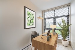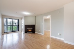 TRAFALGAR SQUARE – Experience urban living in the heart of Kitsilano! This bright corner unit offers 2 bedrooms, 2 bathrooms, a den, and extra storage across 881 sq. ft. The open-concept layout features a gourmet kitchen with stainless steel appliances, gas range, granite countertops, and flows into the living area with a cozy gas fireplace (included in strata fees). Highlights include hardwood floors, a den that can be used as an office, in-suite laundry, a spacious balcony with peek-a-boo mountain view, and secure parking. All in a prime location—minutes to the beach, steps from cafés, restaurants, groceries, shops, and transit to UBC and downtown. Don't miss out on this move in ready home!