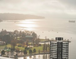 This coveted Skyfront Collection “01” residence boasts cinematic views of English Bay, captivating from sunrise to sunset in every room. The open two-bedroom plus den layout blends style and function, featuring Italian cabinetry, spa-inspired bathrooms with heated marble floors, a full Smart Home system, and air conditioning for year-round comfort. Step outside to the semi-exclusive balcony, a serene space for morning coffee, sunset cocktails, or simply soaking in the panoramic vistas. The chef’s kitchen, outfitted with Gaggenau appliances and a generous quartz waterfall island, is perfect for entertaining. The primary suite offers a luxurious ensuite with an oversized walk-in rain shower, smoked-glass accents and marble walls while the second bath features a soothing soaker tub.