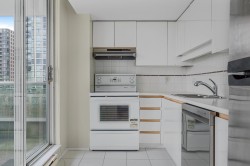 Experience stunning views of False Creek and Yaletown from this beautifully appointed CORNER UNIT in The Discovery. This spacious 2 bedroom, 1.5 bathroom residence offers the perfect blend of comfort and convenience. The updated kitchen features a brand new dishwasher, hood fan and garburator, all complemented by a west facing balcony - ideal for relaxing and watching breathtaking sunsets. The home boasts updated laminate flooring throughout. Spacious living room and dining rooms. The two oversized bedrooms offer ample space, with the primary bedroom featuring a full ensuite bathroom. Laundry room and powder room complete the home. Amenities include fitness centre, party room, sauna, hot tub, guest suite, garden, and library.