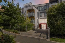 Welcome to this bright ground-floor condo at the Horizon in the Railyards, offering a rare 425sqft private patio! This award-winning contemporary building is set in a vibrant waterfront community that blends natural beauty with urban convenience. The fully rentable and pet-friendly suite features a modern kitchen with stainless steel appliances and quartz countertops, opening into a sunlit living and dining space with southwest-facing windows. Everyday comforts include in-unit laundry, a designated parking stall, separate storage, bike storage, and paddle board/kayak storage in building. Residents also enjoy access to a rooftop patio with sweeping city and waterway views. Just steps outside your door you can walk, kayak, or cycle downtown in minutes, or explore the parks and shops right across the street. With the Galloping Goose Trail, Selkirk Trestle, and Gorge waterway at your doorstep, this home is perfect for those seeking both an active lifestyle and a connected urban experience.