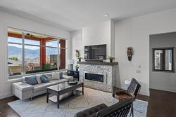 Location and lifestyle—this home truly has it all! Nestled in the highly desirable community of Sonoma Pines, this stunning walkout rancher with partial lake views offers both comfort and convenience. The open Mojave plan features a spacious kitchen with a large center island, sit-up bar, updated lighting, walk-in pantry, and newer stainless steel appliances. An elegant stone fireplace & engineered hardwood floors grace the main living space, filled with natural light from a wall of windows showcasing picturesque views. Wake up with coffee or unwind with a glass of wine on the extended deck with glass railings, ceiling fan, and gas hook-up. The primary bedroom boasts a luxurious 5-piece ensuite with dual vanities, WI shower, & spacious WI closet. A versatile second bedroom/den, full bath, and laundry with new washer and dryer complete the main level. The recently renovated lower level features a large family room with beautiful engineered flooring, a stylish feature bar with two wine fridges, two additional bedrooms, full bath, & ample storage. Step outside to a private backyard with a cedar arbor,Perfect for relaxing or entertaining. The heated double garage includes an EV charger and Pro Slat Wall system for organization. Sonoma Pines offers amenities including a clubhouse, gym, library, billiard room, and a social room with rentable full kitchen. Secure RV parking is also available. Located close to Two Eagles Golf, wineries, shopping & LAKE. No PTT or speculation tax.