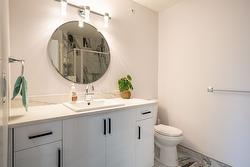 Both bathrooms have been completely updated with sleek, glossy tile finishes, and a new washer and dryer adds everyday convenience. The hallway leads to two spacious bedrooms, including a luxurious primary suite with a private ensuite and walk-in closet.