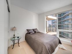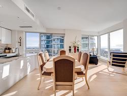 Welcome to this exquisite luxury residence, The LANDMARK of White Rock. This sophisticated 1-bedroom unit, accompanied by an expansive den that easily doubles as a second bedroom. This residence has South East facing direction of OCEAN and Mountain View on 22nd floor(Highest one bedroom), complete with air conditioning, engineered hardwood flooring, a full-size washer and dryer, and Top Tier "Miele" appliances package. Building's impressive 10,000 square feet amenities of indoor/outdoor pool, a well-equipped gym, and the convenience of a full-service concierge. Walking distance to catchment school White Rock Elementary and Semiahmoo High School.