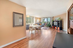 Welcome to White Rock Square II, a sought-after and well-maintained concrete mid-rise in the heart of White Rock! This bright and spacious 1bed, 1bath home offers a smart layout with an open living and dining area, large balcony, and a functional kitchen ready for your ideas. Large windows fill the space with natural light, creating a warm and inviting feel. Bonus: in-suite laundry for added convenience! Just steps to Semiahmoo Mall, Thrifty’s, healthcare, restaurants, coffee shops, and the theater–everything you need is within level walking distance. Low strata fees that include gas, a resident caretaker, secure underground parking, and a friendly community atmosphere. Perfect for 55+ downsizers or anyone seeking affordable living, just minutes from the beach!!!