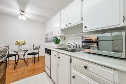 Lovely spacious top floor condo in central White Rock. 2nd Bedroom /den has skylight. Updated w laminate floors, fresh paint, white kitchen w new stove. Level walk to everything: highly desired location w convenient access to shopping & transit. Building is well-maintained, friendly, 55+, no smoking w updated roof, elevator controller & front exterior. Prof managed co-op is run like a strata w large contingency reserve fund for peace of mind. Owners allocated shares in the company that owns the building & land. Monthly fees incl. heat, hot water & water ($349.29/mo). Clean modern shared laundry. One cat allowed. No rentals. Underground parking & locker. Charming move-in ready home.
