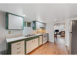 PRIME LOCATION – MOVE-IN READY! This charming centrally located bungalow is freshly painted and ready for new owners. The main floor features two bright bedrooms, a full bathroom, an updated kitchen, and a spacious living room with a large bay window.The finished basement offers great potential with a separate entrance, kitchenette, two non-conforming bedrooms, a large living area, and a 3-piece bath — perfect for guests or rental income.Enjoy the outdoors on the 14x16 deck, along with a large storage shed and spacious backyard. Ideally situated across from Saint Bernadette School and within walking distance to English & French schools, Avenir Centre, Jones Lake, and more. A must-see!