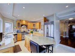 Lakeside Living in the Heart of Brampton. Homes like this are rarely offered. This meticulously maintained 2-storey family home, offers approximately 3,800 total square feet of refined living space just steps from the sparkling shores of Professor’s Lake while close to convenient city amenities including highway access, shopping and Brampton Hospital.The main level features a mix of travertine tile and maple hardwood floors, separate living and dining space, cozy built-in gas fireplace, architectural accents throughout and showstopping views from the kitchen. Upstairs, you’ll find four generously sized bedrooms, including a primary suite with stunning east facing lake views — the perfect way to begin each day. Main and upper floor has large European tilt-and-turn windows, bringing in abundant natural light.The walkout basement can be used personally or as an in-law suite or potential rental apartment with its separate entrance, fitted with a large bright bedroom, full secondary kitchen, den, 3pc bath and separate laundry.Outside, the raised deck provides space for lounging and dining, plus access to the lower level grounds, storage shed and abundant gardens. This is more than a home — it’s a lifestyle. Discover your own peaceful escape at Professor’s Lake Parkway, where every day feels like a getaway.