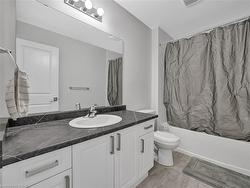 Welcome to this Beautiful 2 year old FREEHOLD townhouse in the in the vibrant Echo Place neighborhood. This 3 bedrooms and 2.5 bath spacious turnthe budding family who want to move in and have very little to do. The luxurious open concept main floor with soaring 9ft ceilings come equipped with a 2-piece bathroom, sleek tiling and elegant dark hardwood flooring . A ton of natural light floods the beautiful white kitchen. Plenty of cabinet space, stainless steel appliances and island with extra counter space to set the tone for a modernized feel. Seamlessly transitioning in the bright living room area with oversized window and pot lights thorough out. Adjacent to the kitchen in the dining area where sliding glass doors that give you quick access to the backyard for BBQ and guest entertainment purposes. The immaculate oakwood wood staircase with black iron balusters leads you up to the second level which boats a flex space great for gaming or an office. The large master bedroom has a walk in closet and an ensuite with a glass shower. A 4 piece bathroom and two more good size rooms complete the second floor. The basement is unfinished with a laundry area, ready for you to expand your living space and customize it with your own vision for the future. Minutes to Wayne Gretzky pkwy where you will find highway access to the 403 and all your amenities needed. Shopping district of Brantford including Lynden Park Mall, Canadian Tire, Home Depot and the new Costco! Take advantage of the abundance of trials, Wayne Gretzky sports complex, New YMCA, the hospital nearby, this super safe, quiet Brantford neighborhood is one of my favorites and a dream for the family looking for convenience and a newly built home. Book your showing today. don’t’ miss out on this amazing opportunity!