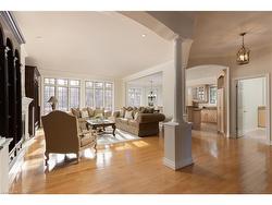 Discover this exceptional custom executive bungalow with southern exposure positioned at the end of a peaceful cul-de-sac on a 1/3 acre lot,where luxury meets tranquility backing onto a wooded ravine connecting the Bruce Trail and all its beauty.This stunning 3+1 bdrm,3.5 bath residence spans 6,327 sq ft of meticulously designed living space,perfectly situated in Burlington’s desirable Escarpment neighbourhood.Natural light cascades throughout the home,enhanced by impressive 10-12ft ceilings on the main level and over 9 ½-12ft ceilings on the lower level.Open concept Great Room features hardwood flooring and a cozy gas f/p flowing seamlessly into the gourmet kitchen.The kitchen showcases pristine cabinetry,a large island and breakfast area w/ convenient access to the outdoor balcony overlooking your backyard.The perfect places for casual entertaining.Elegant formal dining room accommodates larger gatherings,while a separate main-floor office provides a quiet workspace.The oversized primary bdrm offers a private retreat with gas f/p,spacious w/i closet,and updated 5 pc ensuite. 2 additional bedrooms, 4 pc bath,and powder room complete the main level along with the practical elements of a laundry room with direct garage access.The finished LL expands living options w/ rec room complete with pool table area,media room,and a gym area with direct access to the yard. Guest bedroom is located next to a 3-pc bath.The Utility room w/ 12ft ceiling provides ample storage,maximize functionality.Step outside to discover a private retreat w/ manicured gardens featuring an inground saltwater pool & extensive entertaining areas accessible through 2 separate walkouts from the LL.A double oversize garage provides space for a car storage lift system.This prime location offers convenient access to highways,shopping,walking trails,& golf, creating the perfect blend of suburban serenity and urban convenience.Freshly paint thru/out ensures move-in readiness.LUXURY CERTIFIED