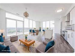 A SOPHISTICATED Corner unit condo in the highly sough-after Paradigm Gran - unit #2001! This espansive 2 bedroom, 2 bathroom, 2 car Tandem parking, this condo offers approximately 1039 sq ft of contemporary living space and is located on the 20 storey hig-h-rise known as Paradigm Grand Condo's in the Brant/Fairview area of Burlington. Designed with style and comfort in mind, the unit features northeast exposure, letting in ample natural light. Upgraded Sleek finishings including quartz countertops, upgraded cabinetry and stainless-steel appliances, flooring thru-out! Prime location adjacent to Burlington Go Station, making citywide commuting effortless! Quick and easy access via QEW. 403 and 407, simplifying regional travel..Mere steps from downtown Burlington, offering boutique shopping, international dining, waterfront trails, Spencer Smith Park, and lifestyle amenities. Close proximity to Burlington Centre Mall and large retailers like Walmart - enabling everyday convenience. Residents at Paradigm Grand enjoy an impressively curated array of resort-style amenities: Indoor pool, hot tub, sauna, fully equipped fitness centre, half court basketball gym, outsoor terrace with BBQ and lounge areas, dog park and wash stations for pet owners, multiple party rooms, guest suites, theatre room, kids' playroom, games room and more. 24 hour concierge, secure key-fob access, video surveillance and controlled entry systems - ensuring safety and elevated lifestyle.
