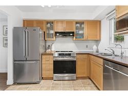 Bright, updated end unit featuring an open-concept main floor with hardwood floors and newer windows. Kitchen offers stainless steel appliances, ample storage, and patio doors to a private patio. Upper level has two bedrooms and a 4-piece bath. Finished lower level includes a family room, 2-piece bath, and large laundry/storage area. Overlooks green space with no neighbors beside for added privacy. Move-in ready!