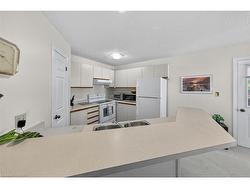 Welcome to this beautifully maintained second-storey, one-level living, town home featuring 2 spacious bedrooms plus 2 full bathrooms. Primary bedroom with walk-in closet and a 4 piece ensuite (tub/shower combo). Second bedroom w/3 piece ensuite (walk-in shower). Numerous windows throughout flood this open concept living area in a cheerful, natural, warm atmosphere. Spacious living room/dining room. Lovely kitchen offers a breakfast bar, pantry, as well as generous extra storage! South facing private balcony (gardener’s delight) is conveniently accessible from dining room plus primary bedroom - extending your living space! Also, enjoy your own personal in suite laundry/utility room! Exclusive-use garage, with an additional parking space and private storage room. Near all amenities! Walk to: waterfront, parks, hospital, Mapleview mall, public transit, schools etc. Easy access to the QEW (Toronto & Niagara bound), 403 and 407. Proudly owned home, meticulously maintained by the same PET FREE & SMOKE FREE owner for over 27 years. This is a special home ready for you! Possession date flexible.