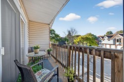 Welcome to this beautifully maintained second-storey, one-level living, town home featuring 2 spacious bedrooms plus 2 full bathrooms. Primary bedroom with walk-in closet and 4 piece ensuite (tub/shower combo). Second bedroom w/3 piece ensuite (walk-in shower). Numerous windows throughout flood this open concept living area in a cheerful, natural, warm atmosphere. Spacious living room/dining room. Lovely kitchen offers a breakfast bar, pantry, as well as generous extra storage! South facing private balcony (gardener's delight) is conveniently accessible from dining room plus primary bedroom - extending your living space! Also, enjoy your own personal in suite laundry/utility room! Exclusive-use garage, with an additional parking space and private storage room. Near all amenities! Walk to: waterfront, parks, hospital, Mapleview mall, public transit, schools etc. Easy access to the QEW (Toronto & Niagara bound), 403 and 407. Proudly owned home, meticulously maintained by the same PET FREE & SMOKE FREE owner for over 27 years. This is a special home ready for you! Possession date flexible.
