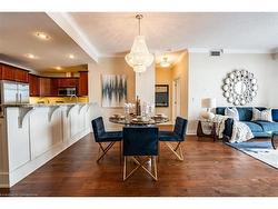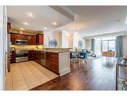 Wake up to breathtaking lake and park views every morning in this beautifully updated suite at Bunton’s Wharf, one of downtown Burlington’s most sought-after waterfront residences. Offering 1,407 sq. ft. of refined living, this 2-bed, 2-bath condo blends luxury, comfort, and an unbeatable location along the shores of Lake Ontario. The bright, open-concept living and dining areas feature 9 ft ceilings, LED pot lights, crown moulding, and rich maple engineered flooring. Step onto your private balcony to enjoy serene views of Spencer Smith Park and the waterfront, the perfect backdrop for morning coffee or sunset unwinding. The gourmet kitchen is a standout, complete with high-end Fisher & Paykel appliances, a two-drawer dishwasher, granite counters, breakfast bar seating, and a generous walk-in pantry with in-suite laundry. Both bedrooms offer walk-in closets, oversized bay windows, and stunning lake views, while the two spa-inspired bathrooms provide comfort and elegance. Enjoy resort-style amenities, including two fitness centres with a golf simulator, a rooftop heated pool and terrace with BBQs, a party room, a games room, sauna, and concierge service. This unit includes underground parking and a same-floor locker, offering exceptional day-to-day convenience. Steps to Spencer Smith Park, the Burlington waterfront trail, boutique shopping, fine dining, cafés, and Joseph Brant Hospital, all with quick access to the QEW, 407, and GO Transit. Two small pets (up to 20 lbs each) are permitted.
