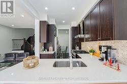 Welcome to a beautifully upgraded freehold townhouse in community of Rural Caledon - offering the perfect blend of style, comfort, and functionality. This spacious home features 3 bedrooms and 3 bathrooms, thoughtfully designed for modern family living. Step inside to find upgraded hardwood floors, a freshly painted interior, and pot lights throughout the entire home, creating a bright and inviting atmosphere. The extended kitchen cabinetry, quartz countertops, stainless steel appliances, natural gas stove, and sleek stainless steel chimney make the kitchen a true centerpiece, ideal for both everyday meals and entertaining. Convenience is elevated with a second-floor laundry room, while the open-concept layout ensures seamless flow across living and dining spaces. Outdoors, the property continues to impress with an extended exposed driveway offering parking for three vehicles (one in the garage and two on the driveway), plus a stone patio in the backyard that's perfect for gatherings or quiet relaxation. Every detail has been carefully considered, from the modern finishes to the functional upgrades, making this home move-in ready. Located in the sought-after community of Rural Caledon, this property combines suburban tranquility with easy access to amenities - a rare opportunity to own a stylish, upgraded townhouse in a family-friendly neighborhood. (id:27)