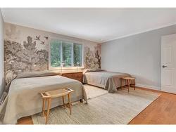 PRIVATE ESTATE LIVING – 22 Deerpath Court, an extraordinary residence tucked away on a quiet cul-de-sac, surrounded by towering trees and beautifully landscaped grounds. Situated on 1.17 private acres, resort-like property, this custom home offers over 5,018 sq ft of living space across 3 meticulously designed levels. The long, rounded driveway flows effortlessly toward an impressive 3-car garage & inviting covered front porch. Step inside the grand foyer, where a sweeping staircase, slate floors, and intricate trim work set the tone for timeless elegance. To your right, the formal living room offers rich herringbone hardwood floors & a statement fireplace—perfect for hosting guests or quiet evenings by the fire. The heart of the home is the magazine-worthy kitchen, featuring custom cabinetry, luxury appliances, stone counters, and a butcher block island. The bright breakfast area & family room are wrapped in windows with incredible views of the backyard retreat. Sunlight pours into the bonus sitting room—an ideal space to curl up with a coffee and take in the peaceful, natural surroundings. The main floor also offers a private office with fireplace, a spacious formal dining room, & a luxurious primary suite with double walk-in closets & spa-like ensuite overlooking the pool. Upstairs, you’ll find 3 generous bedrooms, 2 full bathrooms, & ample storage. The fully finished basement expands your living space with a rec room, bedroom, 3pc bathroom, and abundant storage, plus direct garage access—perfect for multi-generational living or future in-law potential. Step outside and discover your private oasis: an inground pool with slide, hot tub, lounging areas, and manicured gardens create the ultimate space for summer entertaining. This home truly combines luxury, privacy, and function in one of Cambridge’s most desirable enclaves, just minutes to shopping, trails, golf, & highway access. Welcome to your forever home on Deerpath Court—where every day feels like a getaway.