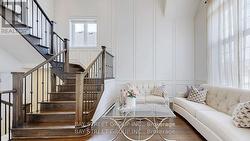 Tucked away on a quiet cul-de-sac and backing onto a lush ravine, this stunning detached residence offers privacy, elegance, and modern comfort. Designed for families who love to entertain and relax in style, it features over 7,000 sq. ft. of professionally finished living space with exceptional attention to detail. Set on a premium half-acre ravine lot with breathtaking views and mature trees, the home opens to a grand two-storey foyer with coffered ceilings, wainscotting, and abundant natural light. The main floor features 9-foot ceilings, premium hardwood flooring, and more than 100 pot lights. A gourmet kitchen with granite countertops and a large breakfast island flows seamlessly into the bright, open-concept family room, where a gas fireplace overlooks the serene backyard. A private main-floor office adds convenience for remote work or study. Upstairs, four spacious bedrooms each include a private ensuite, with the luxurious primary suite offering a walk-in closet and a spa-inspired bathroom complete with soaking tub and elegant finishes. A three-car EV-ready garage and an expansive backyard provide the perfect space for entertaining, gardening, or quiet evenings outdoors. Situated on a safe, family-friendly street just minutes from Highway 404, this home blends sophistication, comfort, and tranquility-crafted for those who value beauty, space, and connection. (id:27)