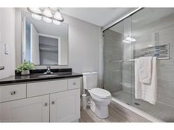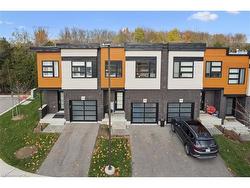 Welcome to #83–60 Arkell Road, an exceptional modern townhome tucked within an exclusive, private enclave of just a handful of homes. Backing onto a dense forest, this home offers rare privacy and a natural backdrop that feels miles away from city life—yet it’s ideally located in Guelph’s desirable South End, close to top-rated schools, public transit, and every amenity imaginable. With over 2,400 sq ft of living space, including a walk-out lower level, this home features 3 bedrooms and 3.5 bathrooms, plus a den/home office on the second floor. This unit is highly upgraded, with luxury vinyl plank flooring, LED pot lights, and stone surfaces throughout. The open-concept main floor is perfect for entertaining, with a spacious dining and living area that walks out to a private deck overlooking the forest. The chef-inspired kitchen features full-height cabinetry, high-end stainless steel appliances, and a quartz waterfall island that anchors the space. The upper landing includes a convenient laundry closet and a flex space that's ideal for an office, workout area, or reading nook. The primary suite enjoys a dedicated ensuite with a glass-enclosed shower and rain shower head, while two additional bedrooms share a stylish 4-piece bathroom. The finished walk-out basement provides even more living space with a full bathroom and a large recreation room that opens to a covered patio surrounded by nature. The cherry on top? This unit comes with a rare third parking space! This is the ideal home for a stylish couple, modern family, or investor who is looking to attract a high quality tenant.