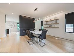 Custom, all brick, 2024 new build masterpiece sitting on a gorgeous lot backing onto mature greenery, and boasting a stately-modern presence from the road. Prestigious street lined with other custom homes. Prepare to be memorized by soaring ceiling in foyer open to above with breathtaking chandelier and open riser, white oak staircase with rod iron spindles. Perfect main level design with dining/living room separated by two sided fireplace. Family room overlooking private backyard with massive high end aluminum windows that continue through out the home. Tasteful black kitchen features chic flat panels and undermount lighting and is accentuated with high-end appliances, quartz countertops and massive island with ample storage on both sides. Gorgeous LED lighting in ceiling gives a modern presence. Second floor is well equipped with four generous size bedrooms each featuring their own walk in closets. Master bedroom boasts luxurious ensuite with glass shower, soaker tub, double sink with high end faucets and walks through to a dream closet with custom built ins and ideal design. Second bath is a jack and fill being shared by two of the four bedrooms. All bedrooms are blanketed in stunning hardwood floors and boast light drenched windows giving a lively presence. Open staircase also leads to basement featuring 9 foot ceilings and oversized basement windows. Paved four car driveway and premium garage doors complete this homes curb appeal. This home is minutes to arterial infrastructure and all amenities. Luxury Certified.