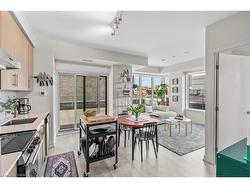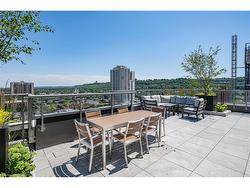 ONE OF ONE! This 4th floor corner unit cannot be replicated: the only 607sf terrace with North AND West exposure - enjoy space, privacy and a view. A floorplan designed with lifestyle in mind, starting with a generous entryway with front hall closet, perfect for welcoming guests. The primary suite is tucked away, featuring a three piece ensuite with glass shower and full closet, the perfect hideaway for busy professionals who value sleep. The open concept main living space comes predecorated with floor to ceiling windows with inspiring city views, outfitted with privacy shades if that’s more your style. Tall ceilings and neutral floors make a perfect backdrop for any decor, and the open floor plan makes for endless furnishing opportunities. This space is anchored by an efficient kitchen finished in light oak cabinetry with a sleek penny tile backsplash, modern stainless appliances, stone counter and undermount sink. A second full bedroom with closet, and a stylish 4 piece bath ensure this space will work for any lifestyle. Sold with 1 underground parking (close to the stairs!), and 1 locker. Reasonable monthly fee includes maintenance, building insurance and central air! Added bonus: roof top patio with bbqs, party room, full executive gym, pet spa - complimentary amenities to enjoy!