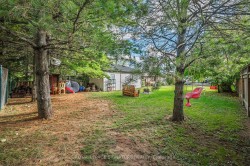 The Hamilton-Toronto Go Train service is days away! Nestled on the border of desirable Stoney Creek and minutes from the new Go Train station this charming bungalow offers a blend of modern updates and cozy comfort, making it an ideal home for families and individuals alike.The property boasts a range of appealing features that enhance its practicality and aestheticappeal.One of the key highlights is the updated kitchen, which showcases uniquely styled quartz countertops that add a touch of sophistication and elegance. The vinyl flooring throughout the home ensures durability and easy maintenance, creating a seamless flow from room to room. The main bathroom features a soothing soaker tub, perfect for relaxing after a busy day, providing a spa-like experience within the comforts of home.The principal bedroom is spacious and includes a substantial wardrobe, offering ample storage space for clothing and personal items. For entertainment and family gatherings, the large recreation room stands out with its vinyl flooring and trendy industrial-style open ceiling,creating a modern and inviting atmosphere for leisure and social activities.Additional storage and practicality are catered to by the furnace room, which provides generous space for storage and a workshop area, making it convenient for home projects and organizational needs. Step outside to discover a large deck and an enormous backyard backing onto green space, creating a private oasis for outdoor activities.The backyard's size and enclosed design make it perfect for families with children and pets,offering a secure environment for outdoor play.Furthermore, a separate garage located at the back of the property with side access provides additional parking and storage options. The overall layout and features of this bungalow makeit a perfect family home or a peaceful retreat for anyone seeking comfort, style, and functionality.