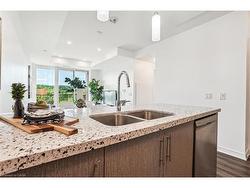 RAVINE VIEW , LUXURY CORNER SUITE 2 bedroom, 2 bathroom Suite. Spectacular SOUTHWESTERN view. OPEN CONCEPT living/dining room/kitchen with 9 ft. b.h. ceilings. STONE COUNTERS. Quality vinyl floor throughout main living area (NO CARPET) , ceramic in bathrooms. In suite, laundry & more. Features PATIO DOOR to BALCONY. Panoramic view of the escarpment. UNDERGROUND PARKING & LOCKER INCLUDED. Fabulous amenities. Spacious lobby with concierge, fitness centre, BBQ terrace, guest suite, party room. Close to the Redhill Expressway & QEW, St. Joseph’s East Hospital, Eastgate Square & new GO station. All measurements approximate, as per builder's plan.