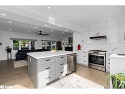 Nestled on a generous lot with peaceful nature behind and the lake just across the road, this property offers the perfect balance of family living and lakeside retreat. Just steps from the waterfront park, you can enjoy morning walks by the water, afternoons at the park, and evenings taking in the fresh lake breeze. Inside, the open-concept layout creates a warm and welcoming space where family and friends can gather with ease. A versatile separate area provides flexibility for a workshop, garage, or hangout, making the home as practical as it is inviting. Outdoors, a large deck and stone patio with a hot tub set the stage for relaxation, entertaining, and enjoying the beautiful natural surroundings. With its serene setting, proximity to the lake, and spaces designed for both everyday living and year-round enjoyment, this home is truly special.