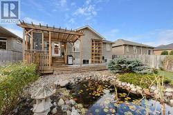 Style, comfort, privacy, tranquility... plus an in-law suite with private entrance! This two plus one bedroom bungalow is beautifully designed. On the main level, we have high ceilings, hardwood floors that flow through the living and dining spaces, updated lighting, and a fantastic layout. From the spacious entry we are guided past the separate dining room and guest bath to the expansive great room, overlooking the spectacular backyard, with tiered decking that extends the width of the home, pergolas, established gardens, water feature and natural gas BBQ. The kitchen offers quartz countertops, all appliances and ample storage. The primary suite is big enough for your king size bed and the ensuite has a glorious corner tub! From the great room we have a gracious staircase to the utility space and hobby nook, as well as the interior entrance to the in-law suite. This suite is bright and expansive, offering a full kitchen with three appliances, three-piece bath and separate bedroom. You'll be delighted with the separate entrance into the double car garage with man door and sidewalk. There is ample parking here with four additional driveway spaces. Baldwin Court is ideal for people who want quiet, privacy, but quick access to all of Kingston West's amenities, like Costco, Farm Boy and the K&P trail! (id:7525)