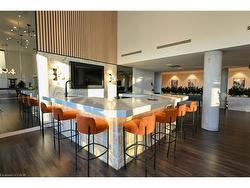 Experience urban living at its finest in this stunning condo located in the heart of Downtown Kitchener at Station Park - just steps from transit and directly across from the Google office. This well-maintained and secure building offers an unmatched lifestyle with world-class amenities including a two-lane bowling alley with lounge, premier bar and games area with billiards and foosball, private hydropool swim spa & hot tub, fully equipped fitness and yoga/pilates studios with Peloton bikes, pet spa, and a beautifully landscaped outdoor terrace with cabana seating and BBQs. Enjoy the convenience of a concierge desk and private dining room with a full kitchen for hosting. The suite itself features an upgraded kitchen and is perched on a high floor offering breathtaking city views. A perfect blend of luxury, comfort, and unbeatable location!