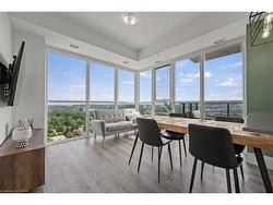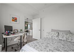 Luxury Corner Unit at Garment Street Condos-Experience elevated urban living in the heart of Kitchener’s Innovation District. This bright, south-facing corner unit offers 2 bedrooms, 2 bathrooms, a locker, and one underground parking space—perfectly blending style and convenience. Floor-to-ceiling windows and an open-concept layout flood the 811 SF space with natural light. The modern kitchen features quartz countertops, a breakfast bar, subway tile backsplash, and premium appliances, flowing seamlessly into the integrated dining area and living room. Step out onto your extra-wide private balcony and take in panoramic city views. The spacious primary suite boasts a walk-in closet and a stylish 3-piece ensuite, while the second bedroom and full 4-piece bath provide flexibility for guests or a home office. Laminate flooring and in-suite laundry add to the move-in-ready appeal. Garment Street Condos offers exceptional amenities: rooftop pool, fitness centre, yoga studio, basketball court, BBQ terrace, co-working spaces, media room, pet run, concierge service—and high-speed internet is included in the condo fees. Situated just steps from top employers like Google’s Canadian HQ, Communitech, Miovision, Vidyard, D2L, and ApplyBoard, and minutes to the University of Waterloo’s Pharmacy School and new School of Medicine, this location is unmatched for professionals and investors alike. Walk to Victoria Park, the LRT Central Station, the GO Train, and downtown Kitchener’s top restaurants, cafes, breweries, and boutiques. Whether you're a professional, investor, or seeking low-maintenance luxury, this is the one. Live where tech, culture, and convenience meet—book your private showing today!
