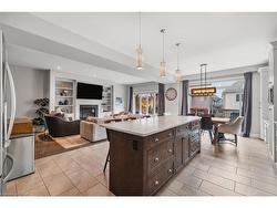 Welcome to 346 Moorlands Crescent, Kitchener, a beautifully designed family home blending modern comfort and timeless style.Built in 2015 by Hawksview Homes, this stunning contemporary property is tucked away in a quiet, family-friendly neighbourhood. Offering 4 + 2 bedrooms and 3.5 bathrooms across more than 2,600 square feet of total finished living space, it provides an ideal combination of functionality, sophistication, and warmth. Step inside to an inviting open-concept main floor, where natural light fills the living, dining, and kitchen areas. The spacious living room features a striking built-in fireplace framed by custom shelving, creating a cozy yet elegant focal point. Large windows and sliding glass doors lead to the backyard, offering easy indoor-outdoor flow and access to a partially covered rear deck, perfect for relaxing or entertaining. The kitchen is a true showpiece, boasting quartz countertops, a stylish tile backsplash, stainless steel appliances, and a large centre island with a breakfast bar. Pendant lighting and an adjacent dining area make this space perfect for both everyday meals and hosting family gatherings. Upstairs, you’ll find a large family room and four generous bedrooms, each with ample closet space. The primary suite includes a walk-in closet, a 5-piece ensuite bathroom, and a custom feature wall that adds an extra touch of design flair. The finished basement, complete with a separate entrance and look-up windows, expands your living possibilities, perfect for a recreation space, guest suite, or potential in-law setup. Situated in Kitchener’s sought-after Doon South area, this home offers both peace and convenience. You’re within walking distance to schools, parks, and local amenities, while Highway 401 is only about 6 min. away, making commuting simple. The neighbourhood is known for its scenic trails, community vibe, and proximity to shopping, restaurants, and schools.