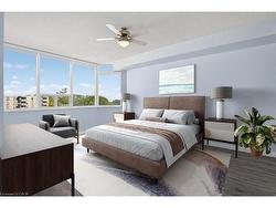 Welcome to effortless condo living in The Regency! Recently beautifully renovated 2 bedroom 2 full bath unit is the perfect home for first time home buyer or someone looking to downsize. Bright open concept Living Room & Dining Room, large Primary Bedroom with walk-in closet and 3 piece Ensuite, good sized 2nd Bedroom, 4 piece Bathroom, Storage Room. 2025 renovations include: ensuite Bath with glass shower & massage panel, 54" vanity with new sink & faucet, new toilet and LED lights, porcelain floor & shower tiles. The 2nd bathroom with new tap, 30" vanity with faucet, new dual flush toilet, LED lights, porcelain tile floor and tub surround. All new Stainless Steel kitchen appliances, soft close cabinet doors and ceiling fan. New stackable washer/dryer. New click waterproof vinyl planks in Living/Dining/2 Bedrooms and storage. New custom window vertical blinds by Levelor in Living Room. Cordless soft lift blinds in both bedrooms from Blinds To Go. Close to Chicopee Ski Hill, walking trails, Fairview Park Mall, grocery stores, Costco, restaurants, easy access to Highway 8 & 401.