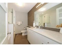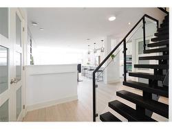 Step into luxury in this bright 2-bedroom, 2.5-bathroom suite! This southwest-facing executive penthouse features soaring two-story windows that flood the space with natural light and offer fabulous views across the city as well as an airy, fresh ambiance throughout. The main floor living space is stunningly updated with white oak floors, quartz countertops, built-in media and bar areas, and is designed for you to entertain in style or relax in an extremely comfortable and beautiful environment. Other main floor features include double closets at the front entry, a storage room or pantry space off the kitchen, and a handy 2pc main floor bath. The 2nd level hosts a spacious primary suite that includes an ensuite with a separate shower and tub, as well as a walk-through closet creating a perfect private retreat. The 2nd bedroom, full main bath, reading nook, and laundry room. Premium building amenities include a fitness centre, private theatre, party room, boardrooms, and a rooftop BBQ terrace with panoramic city views — ideal for summer evenings and gatherings. Experience penthouse living at its finest all just steps from Victoria Park, top dining spots, transit, hospitals, and the best of downtown entertainment.