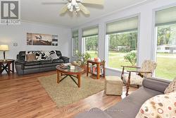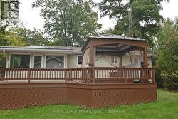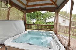 FOUR SEASON HOME - Fully Furnished 2 Bedroom / 2 Bath Bungalow in a quiet location just 2 minutes from Lake Huron. Enter into the spacious living room with an inviting fire place. Kitchen includes white cabinets, lots of counter space and a breakfast bar. Appliances included. The dining room is large enough to accommodate a large table and hutch. Bright family room with another fireplace, lots of windows and sliders to the front deck and Gazebo. Four season sunroom leads to the rear wraparound deck with a "lakeview" Hot Tub. Two decent sized bedrooms. Laundry located in the en suite. Second bathroom (4PC) includes a tub/shower. Laminate floors throughout. Propane furnace (2022). Insulated crawl space. Beautiful yard with perennial gardens. Shed with hydro includes all of the tools and lawnmower. Metal roof. Security systems with outdoor cameras. This home would suit someone looking to retire comfortably and inexpensively. Land lease will be $2600 for the first year and will increase $100/year until it reaches $3000. Band fees approx $2250/year. No conventional mortgages available for leased land. Buyers must have current police checks and proof of insurance before closing. Home cannot be rented out. Seller will have septic pumped out and inspected to meet band requirements before closing. Close to golf, restaurants, shopping and of course the stunning beaches along Lake Huron. (id:7525)