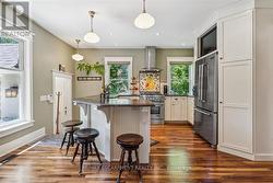 For the first time in over four decades, a cherished century home, opens its heart to a new family. From the moment you approach, a gas lantern guides your way to the iconic front porch. Step inside and feel captivated by the impressive high ceilings that flow into rich hardwood floors. As you wander, discover the warmth of two wood-burning fireplaces, one graced by a stunning antique wood insert. Every corner whispers tales of early 1900s charm, from the carefully chosen antique lighting to the beautiful original windows and wood trim. This isn't just a house; it's a testament to enduring love and meticulous care, where every detail holds a story. The heart of this home beats in its beautifully updated kitchen. Granite countertops frame a unique artisan backsplash, a delightful tribute to the region's agricultural bounty. Just off the kitchen a charming back entrance, an office and laundry room await. The main floor unfolds into an array of versatile spaces: an elegant dining room, an inviting living room, a family room, and a three-piece bathroom. Ascend to the second floor, where three light-filled bedrooms, each with engineered hardwood flooring, offer peaceful retreats. The landing on this level provides additional flexible space, ready to adapt to your desires. Step outside, and prepare to be amazed by the showpiece backyard, recently transformed by the experts at Niagara Outdoors. This sprawling 66x165-ft lot offers ample room for entertaining within its fully fenced yard. The truly impressive two-car garage, adorned with charming stained-glass windows, is more than just a place for vehicles; imagine transforming it into the ultimate backyard bar or simply reveling in its stunning aesthetic. Every detail here has been thoughtfully considered and lovingly executed, and the warmth and care shared within these walls are palpable. (id:27)