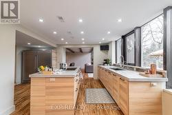 Welcome to 6165 19th Ave., Markham a truly unique country estate offering the best of both worlds: ultimate privacy and serene natural surroundings, all within minutes to modern conveniences. This warm and inviting 4-bedroom, 4-bathroom bungalow inspired by Frank Lloyd Wrights signature style is thoughtfully integrated into the landscape. Floor-to-ceiling windows along the back of the home flood the interior with natural light and provide breathtaking views of the wooded rolling lot and creek. The recently updated kitchen features poured-in-place concrete countertops and rich wood cabinetry. A built-in wall oven and a spacious walk-in pantry make it both beautiful and functional. And the kitchen boasts stunning views of the property including wildlife such as deer, foxes, turkeys, and a great heron. The great room is a showstopper, with soaring 20+ ft ceilings, exposed wooden beams and a natural granite stone wood-burning fireplace perfect for family gatherings or quiet romantic evenings in. The primary suite is a tranquil retreat, complete with a steam feature and jetted soaking tub in the ensuite and a wood burning fireplace. The home is fully wired with CAT-5 making it ideal for modern living. With two wood-burning fireplaces and an additional gas fireplace, warmth and comfort are never far away. Outside, the detached three-car garage with workshop and loft is a dream for hobbyists or those seeking extra space. With utilities already in place, the loft offers untapped potential and can be transformed into a games room, home office, or garden suite. The oversized patio and deck are perfect for entertaining including summer nights around the built-in gas firepit. Natural gas service, a rare feature for a country property, adds value and efficiency. Whether you're seeking a forever family home or a weekend escape, this one-of-a-kind property delivers charm, character, and lifestyle. Dont miss your chance to own this exceptional gem in Markham's countryside. (id:27)