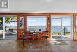 Stunning views from this prime Midland Point waterfront home with 93.87 feet of frontage on Georgian Bay. This Pan-Abode log bungalow offers 2 bedrooms, 3 baths, and a finished basement family room-perfect for year-round living or a weekend escape. Enjoy panoramic views from the boathouse deck, relax in the hot tub, or spend the day on your sandy beach with deep water for swimming and boating. A detached double garage, Bunkie, and updated windows add convenience, while the steel roof, furnace, A/C, and water heater (all new in 2021) plus a Generac generator provide peace of mind. With its open-concept design, natural light, and warm log interior, this home blends rustic charm with modern comfort-an exceptional opportunity to own a true piece of Georgian Bay waterfront. (id:27)
