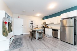 Great area and a wonderful starter place to raise a family. Two bedroom 2 bathroom condo apartment with parking and locker. Close to a quaint town. The condo building is in close walking distance to parks,restaurants & shopping. The place has a beautiful built-in tv unit and fireplace. Kitchen is open concept kitchen with stone counters andback splash. The living room walks out to balcony. Laminate flooring throughout. The hallway features a built-in cubbies for coats. The condo is in walking distance two schools and grocery stores.