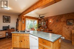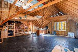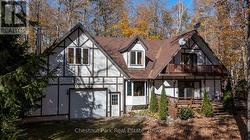 This charming Tudor-style, four-season home or cottage sits on a serene 2.3-acre hardwood lot, just minutes from a public boat launch on Miller Lake. Perfect Haven on the Bruce Peninsula for those seeking peace and privacy surrounded by nature with a seasonal lake view. Bright and welcoming, the home offers open living areas with large windows, hardwood floors, and a cozy wood stove. Enjoy main-level living plus 2 additional large bedrooms & 3 pc bath on the upper level. The 25' x 27' attached garage provides ample storage for water and land toys with large bonus space above for recreation or studio. Separate driveway with RV parking and hydro hook-up along with large storage shed with separate wood storage. Relax on the wrap-around deck with ramp access, wander your own woodland trails, or unwind by the fire pit under the stars. With perennial rock gardens and nearby access to beautiful Miller Lake for swimming, boating, and fishing-this tranquil property is ideal as a year-round home or relaxing getaway! (id:27)