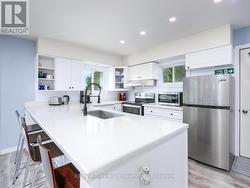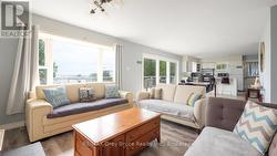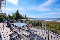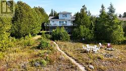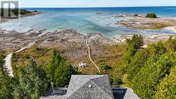 Oh my, the ocean-like views steal the show in this waterfront home on Dorcas Bay. As you step inside you'll be greeted by the open concept kitchen, dining, and living area creating the perfect place for entertaining family and friends. Expansive windows provide an abundance of natural light that floods the living space. A 14-foot patio door, added recently, leads to a generously sized deck, featuring glass panels and rails which were added in the last few years. You'll never tire from the ever changing, uninterrupted ocean-like views of Lake Huron from both inside and outside of this home. With 4 generously sized bedrooms and 2 bathrooms there is ample space for everyone. The primary bedroom boasts a renovated ensuite bathroom and the main bathroom has also been upgraded. On the upper floor you'll find the 4th bedroom space with a recently installed window providing more stunning water views. The home has seen a number of additional upgrades in the last few years including: new flooring throughout, LED lighting inside and out, new pex plumbing, new hot water tank and UV, and a freshened kitchen. The walk-out lower level currently features a utility area, laundry area and a roughed in bathroom, and provides an open canvas to design and add more living space if desired, while the built-in garage provides oodles of storage. The shoreline with its gradual water entry is ideal for families with smaller children to enjoy water activities. This home comes turnkey with furniture, appliances, pots/pans/cutlery/dishes and more. Conveniently located near Tobermory, Singing Sands Beach, and the Grotto, you and your guests have access to an array of recreational activities, shops and restaurants. This property is currently licensed for STA stays with a proven rental income. (id:27)