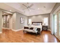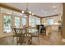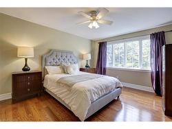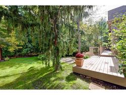 Architectural Masterpiece in Oakville - Muskoka Living on the Ravine! Welcome to the exclusive enclave of Riverbank Way, where bespoke homes overlook lush wooded ravines & back onto Sixteen Mile Creek Conservation. At the very end of this quiet cul-de-sac, the trail ends & tranquil home life begins. This custom-built 6,160 sq. ft. residence blends elegance, functionality & luxury. Sun-filled interiors are framed by picturesque forest views through expansive custom windows w/transoms. Grand living room w/soaring 16' high open-beam ceilings & gas FP forms the heart of this home. Entertain in the dining room designed for 12 guests. Enjoy Downsview kitchen featuring granite counters, marble backsplash, centre island w/2nd sink w/filtered water, gas stove, LED pot lights, B/I speakers & walk-in pantry. The breakfast room opens to a composite deck with glass railings, perfect for morning coffee, or glass of wine. The main floor primary suite boasts 10' high vaulted ceilings, FP, W/O to the deck, W/I closet & spa-inspired bath w/5-jet Jacuzzi, separate shower & stained-glass window. Convenient main floor laundry, inside garage entry & private staircase 2 LL complete this floor. Upstairs are 2 spacious bedrooms & a skylit bath. The walk-out lower level offers a separate entrance, billiards room, media room, office, 4th bedroom, large family room ideal for entertaining or multi-generational living. Granite rocks, multitier patios, lawn, stone benches in the amazing backyard. Dutch clean home. Updates: roof shingles (2018), 2nd floor hardwood (2018), finished lower-level rms (2018), furnace & AC (2023), epoxy garage flrs (2023).Lifestyle perks: miles of interconnected trails@ the doorstep, nearby Lions Valley with red cliffs, hospital, Health Science Village, new Regional Courthouse, 16 Mile Sports Complex, library, community centre, shopping, dining access Hwy 407, QEW&GO Train. The epitome of sophistication & elegance, set in Oakville's most breathtaking natural landscape.
