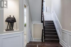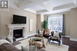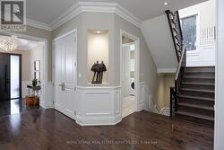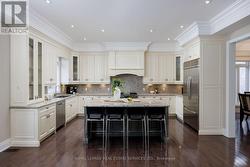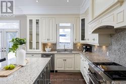 This prestigious southwest Oakville custom home offers luxury living on a large, private pie-shaped lot at the end of a quiet court off Lakeshore Road with mature trees. Ideally located between Oakville Harbour and Bronte Harbour, the property offers quick access to Lake Ontario waterfront parks and beaches,YMCA, downtown Oakville, Bronte Village, and Appleby College, as well as convenient commuter access to the QEW and Bronte GO Station. The striking exterior features a stately stone façade, precast stone accents, a covered front entry, upgraded front door, soffit lighting, and a stone-lined driveway leading to an attached double garage with inside entry. The deep, private backyard, with mature trees, features a newly installed stone patio and ample green space. Offering approximately 3,430 sq. ft. plus finished basement, this 4+1 bedroom, 4.5-bathroom home impresses with 10-foot main-floor ceilings, smooth, coffered, and tray ceiling details, deep crown mouldings, custom cabinetry, upgraded lighting, medium-stained hardwood floors on two levels, and a solid oak staircase with iron pickets spanning three levels. Main-floor living includes a spacious living room/den, formal dining room, and an elegant family room with a coffered (waffle) ceiling and gas fireplace. The chef's kitchen offers extensive custom cabinetry, stone counters and backsplash, under-cabinet lighting, an island with a breakfast bar, deluxe appliances, and a bright breakfast room with a walkout to the patio. All second-floor bedrooms feature ensuite bathroom access, including a luxurious primary suite with two walk-in closets and a spa-like 5-piece ensuite with a freestanding tub and glass shower. The professionally finished basement offers expansive open-concept living, including a recreation/games room, a fifth bedroom, and a 3-piece bathroom. Exclusive & beautiful enclave of homes! (id:27)