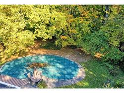 Set on a spectacular 0.566-acre lot, this property is enveloped by towering trees and lush gardens, and backing onto the tranquil Kings Park Woods. Offering nearly 25,000 sq. ft. of privacy and tranquility, this Muskoka-like retreat sits on one of Southeast Oakville's most prestigious streets. A generously sized interlocked driveway leads past the elegant front yard to an impressive 3-car garage. Lovingly maintained by the same family for over 40 years, the home is in pristine condition. The interior features expansive principal rooms, including formal living and dining spaces, a large kitchen with a breakfast area addition, and an open-concept family room—perfect for both day-to-day living and entertaining. A wealth of windows throughout brings in abundant natural light and frames beautiful views of the front streetscape as well as the forested backyard. With multiple fireplaces and hardwood floors throughout the main level, the home exudes warmth and charm. Convenient access to the garage is provided through the laundry room. Upstairs, the spacious primary suite is complemented by three double closets, built-in bookcases, a 3-piece ensuite, and additional flexible space. Two more generously sized bedrooms, along with a 4-piece bathroom featuring a jacuzzi tub, complete this level. The true highlight of the home is the backyard—a private oasis of mature trees, manicured gardens, and a well-positioned pool that basks in sunlight. A full irrigation system ensures the landscaping stays lush. Recent upgrades include a new roof, furnace, and electrical panel, while the garage boasts 50-amp service, ideal for a lift or electric vehicle charging. Walking distance to Oakville’s top public and private schools, including OT and St. Mildred’s, and just minutes to shopping, this property offers exceptional potential. Whether you choose to build a custom home or renovate and expand this charming residence, the large lot allows for endless possibilities.
